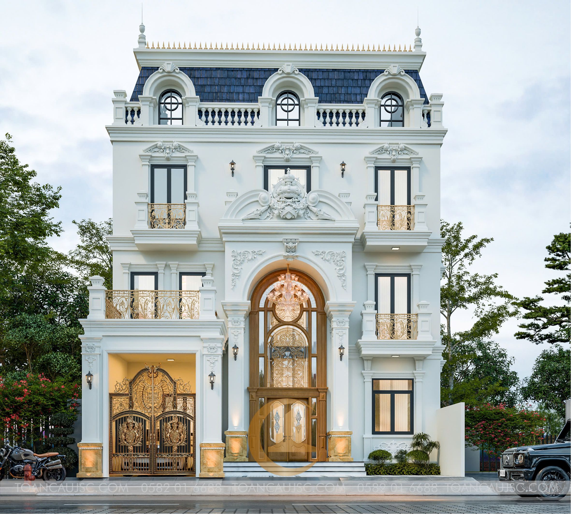 • Thiết kế chuẩn mực: Đảm bảo tính cân đối, hài hòa theo nguyên tắc vàng của kiến trúc Tân Cổ Điển.